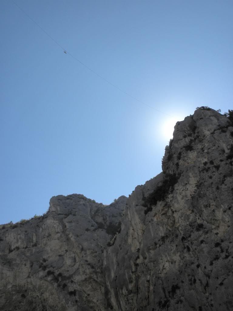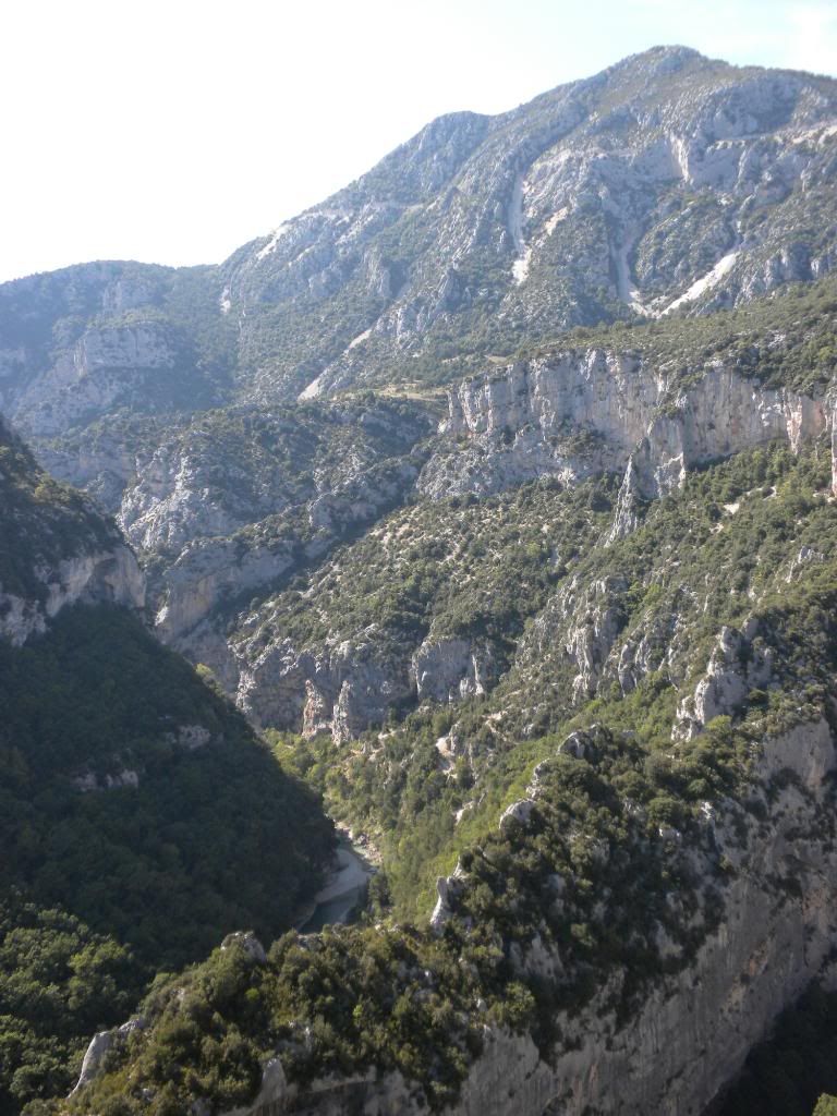 The next day of traveling brought more beautiful sights. We were told we were going to the Gorges du Verdon which is comparable to the Grand Canyon. We had breakfast and boarded the bus nice and early. Well, breakfast turned out to be the wrong idea for the journey that we embarked on. It makes sense to sit and think about it, but I didn't think about it before we left. Talk about some twisting and turning and extremely narrow roads with steep drops on the other side in order to get to this Grand Canyon place! And, we're talking about being on a bus with all of this! We often had to try and pull right up next to the rocky cliff in order to let cars get passed us who were coming from the other direction. I have never been so impressed with the abilities of the bus driver until today. And, like all vehicles in France, he was driving a manual transmission bus, through narrow roads and up hills. After my summer of learning to drive a stick shift I had great respect for our driver. I didn't get sick, but it would have been completely understandable.