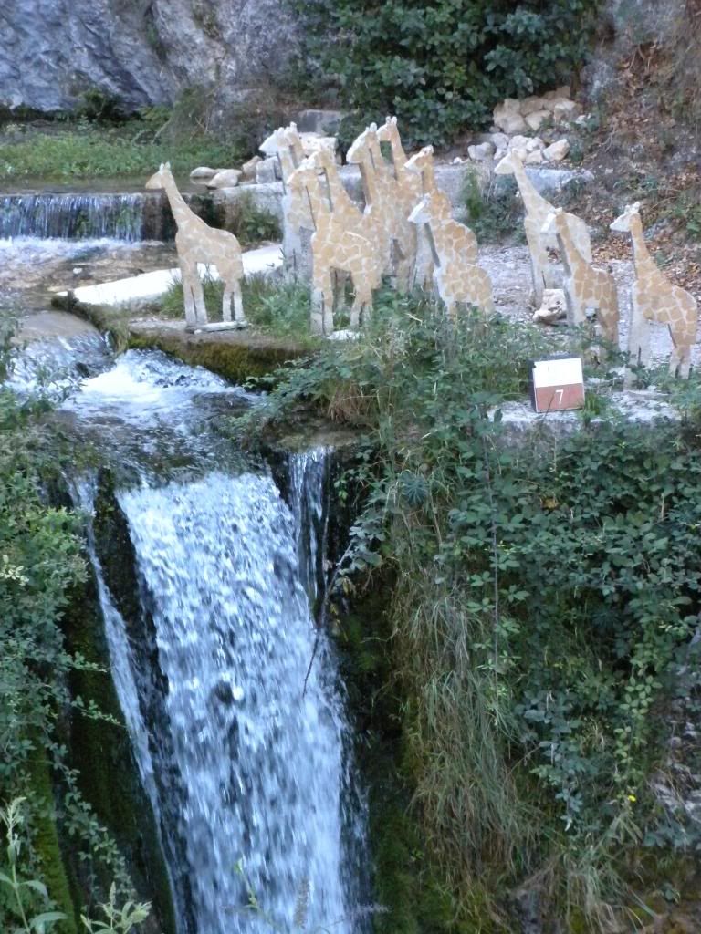 Well, the route wasn't exactly well marked. I figured if we just kept moving uphill we would have found the route to get there. Well, we ended up on the wrong trail. It was a warm-up I told the others, feeling partly responsible for being so headstrong that "yes, we're moving up hill, of course this route is correct!" I took a picture on our way back to the correct route of this lovely little stream with giraffes! Not real ones, but still charming nevertheless!