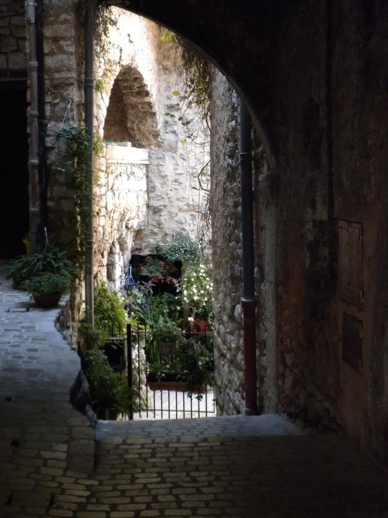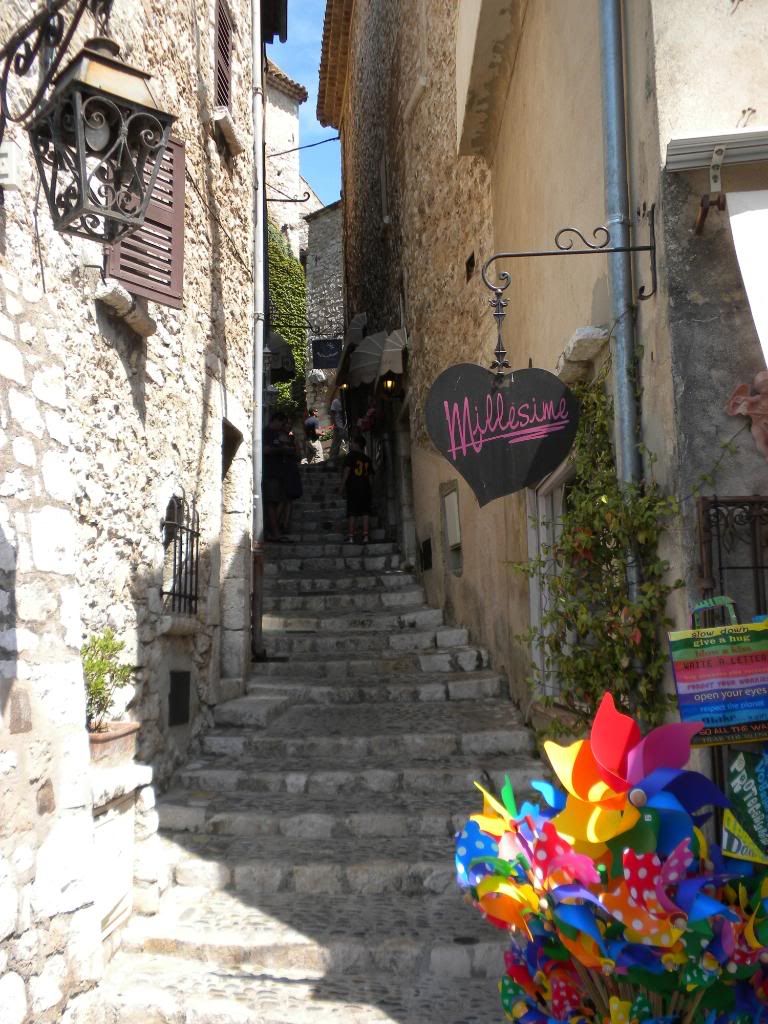 We made a stop at this village first because, as I found out when we got there, we took the long route on our way to the Gorges. Long route? Oh yes, total traveling time 3 hours on a bus. And, it wasn't the three hours that got old, but the winding, twisting, turning roads. In hindsight I should have taken a video of this drive. Incredible! Anyway, this first village was very lovely. Here's a picture from up above.